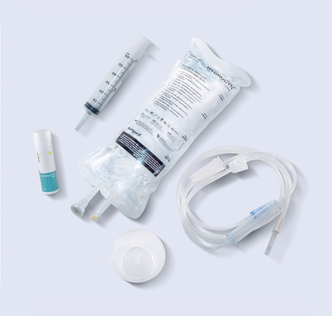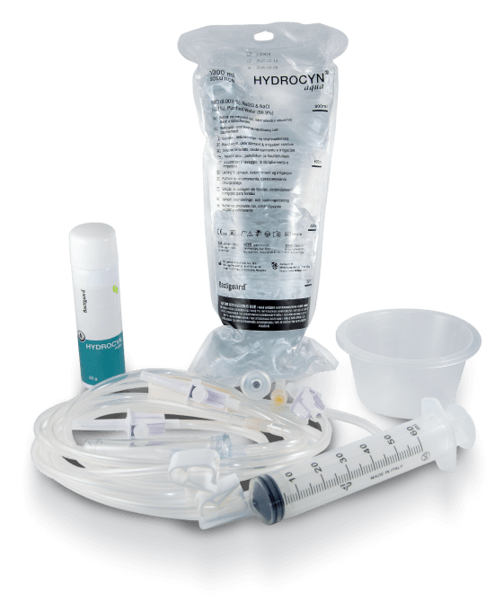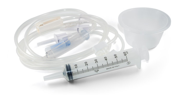 II lavaggio viene effettuato con l'apposito set irrigazione sterile, siringa da 60 ml per lavaggio e ciotola da 250 ml forniti nel kit.