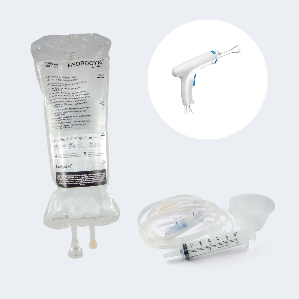 S.O.S.: Soluzione superossidata a base di acido ipocloroso per il trattamento dei tessuti molli e perimplantari. È indicato in caso di sospetta contaminazione e/o infezione impianto correlata.